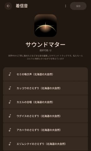 音声コレクション「サウンドマター」には、森林浴に着想を得た新サウンドテーマ「北海道の大自然」が追加された。着信音、通知音、アラーム用に合計14種を用意し、自然の美しさを伝えるサステナビリティ施策の一環として展開する。