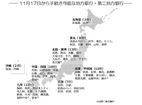 金融機関への住所・連絡先変更は、地方銀行と第二地方銀行あわせて66行の金融機関が対応。複数の金融機関でまとめて手続きができるようになる。千葉銀行や横浜銀行、スルガ銀行などが参加しており、26年2月からは、22の第二地方銀行がサービス開始予定。「地方銀行・第二地方銀行は全行が参加予定」としている。また、メガバンクや協同組織金融機関などにも「参加の働きかけを行なっている」という。