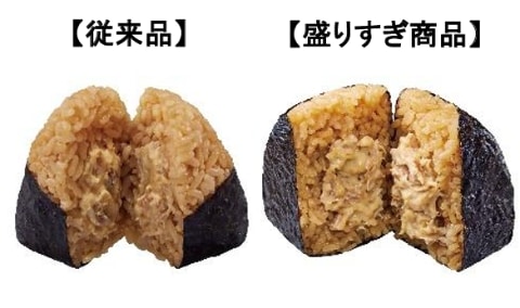 さらに11月24日には「Uchi Cafe盛りすぎ! ふわもち生シフォン」(257円)、「Uchi Cafe盛りすぎ! 大きなチョコシュー(チョコクリーム&ホイップ)」(194円)、「盛りすぎ! ソース焼そば」(538円)、25日には「盛りすぎ!カツカレー(中辛)」(697円)、「盛りすぎ! 高菜明太おにぎり」(192円)、「盛りすぎ! ツナたまごサンド」(297円)を販売する。
