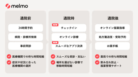 メドレーは、患者アプリ「CLINICS」を「melmo(メルモ)」としてリニューアルし、11月14日から提供を開始する。
