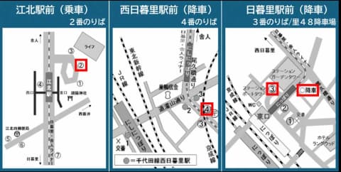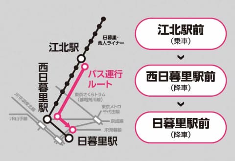 運行ルートは、江北駅前(乗車)→西日暮里駅前(降車)→日暮里駅前(降車)。江北駅前を7時、7時25分、7時45分に発車する3本を運行する。民間貸切バスの借り上げによる運行。乗車定員は各便45人程度。