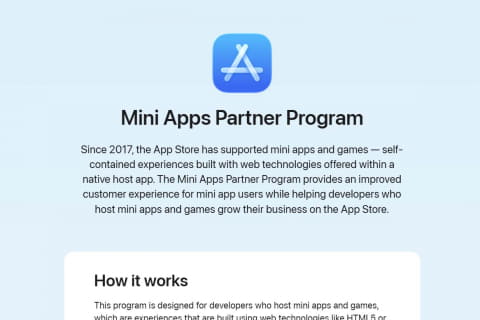 Appleは13日、ミニアプリを提供するアプリにおいて、アプリ内課金の手数料を15%に引き下げる「Mini Apps Partner Program」を発表した。