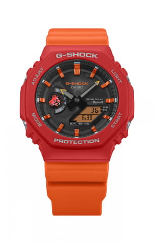 「GA-B2100DF-4AJR」はガラパゴスベニイワガニがテーマ。ガラパゴス諸島の岩場や砂浜に生息し、その鮮やかな体色がレッド×オレンジのカラーリングで表現されている。ハサミを振り上げた愛嬌のある姿がデフォルメされ、サブダイヤルの小針とバンドの遊環にレイアウトされている。文字板のシルエットデザインは、ガラパゴス諸島の地図をイメージした。