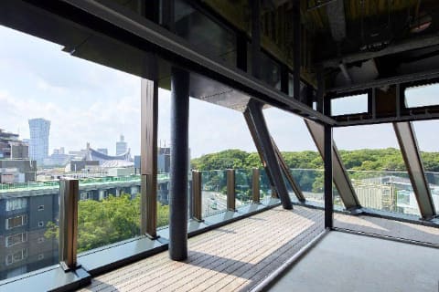 2階には約400m2の広場を備え、店舗によるイベント開催などに活用できる。6階には表参道の欅並木を超える高さにテラスを設けた。