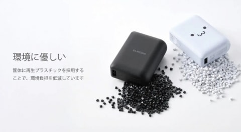 パッケージはジッパー加工でハサミ不要。環境配慮の観点から、包装資材には紙やポリ袋のみを使用し、本体部品の一部にリサイクル原料を採用している。JBRCの回収対象製品でもあり、自治体や協力店でのリサイクルが可能。