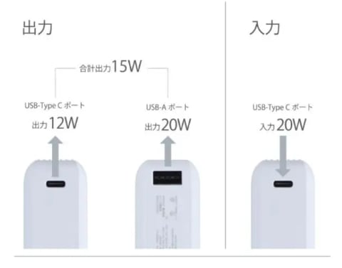 本体容量は10,000mAhで、USB Type-Cポートからは最大20Wの出力に対応。スマートフォンやイヤホン、タブレットの充電が可能。保護機能として、過充電・過放電・過電流・短絡・温度検知の5つの機能を搭載。24時間温度を監視する機能(Thermal Protection)や、繰り返し約1,000回使用できるリチウムイオン電池を採用する。スマートフォンとバッテリーを同時に充電できるパススルー機能にも対応する。