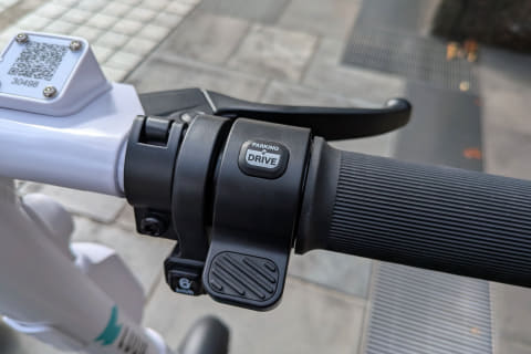 特定小型原付として0km/h発進となるため、意図しない発進を防ぐDRIVE/PARKINGスイッチも用意する。なお、カゴを前面にも搭載しなかったのは、自転車との誤認防止に加え、重心バランスを最適化して安定性を確保する狙いがあるという。