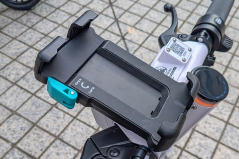 また、既存車両も含めた改良点としてスマホホルダーも刷新。シェアサイクルのスマホホルダーでは、さまざまなサイズのスマホに対応しつつ、固定力が弱いと段差で端末が飛び出し、強すぎると開閉しづらいという相反する要素のバランスが求められる。