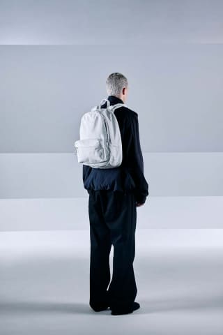 レザーバッグ「Daypack "Common"」は、meanswhileの定番バックパック“Common”を、objcts.ioのデザイナー・角森智至氏が再解釈。デイリーユース向けのサイズ感に収め、アウトドア仕様の原型をより都市生活に適した佇まいに落とし込んだ。ダイニーマレザーの採用により、約780gと軽量性を実現し、軽やかな移動をアシストする。