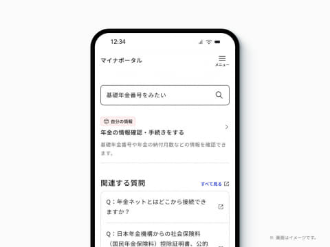 マイナポータルでは従来、「基礎年金番号」「パスワード」など単語での検索のみに対応しており、文章を入力すると検索結果が表示されなかった。今後は、「基礎年金番号をみたい」「パスワードがわからない」などの短い質問や文章を入力することで、関連性の高い機能や手続を探せるようになる。