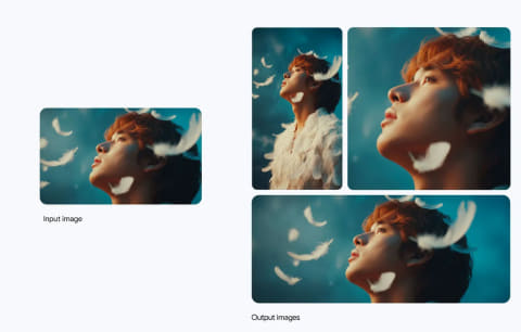 クリエイティブも強化し、画像内の任意の部分を選択、調整、変換できる。カメラアングルの調整、フォーカス変更、洗練されたカラー グレーディングの適用などが可能。また、昼から夜への変更、ボケ効果の作成など、シーン ライティング調整などの機能も利用できる。ソーシャルメディアから印刷物まで、プラットフォームにあわせたアスペクト比の指定や、2Kや4Kの解像度にも対応する。