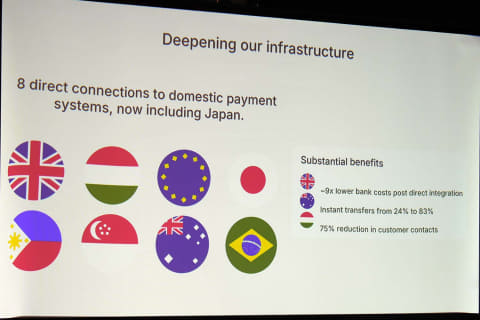 海外送金の手数料は6.49%。日本を含むG20各国では、2027年までにこの手数料を3%まで削減する目標を立てており、グローバルで統一したネットワークをもつWiseには大きな強みがあると説明。日本においても、Wiseの拡大が多くの機会を生み出すとした。
