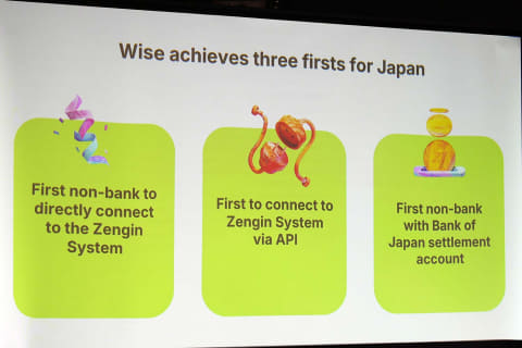 また、Wiseによる全銀システム接続は、既存の中継コンピューターシステムではなく、新たに構築されたAPI経由で接続。API経由で日本銀行と直接当座預金取引を開始する初の資金移動業者になる。