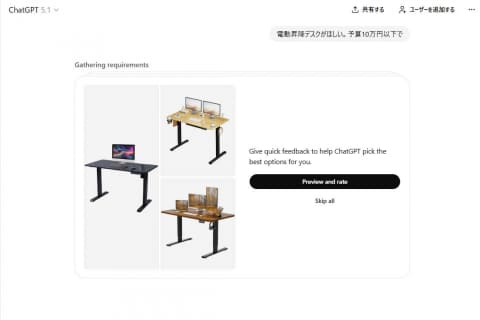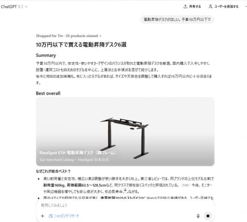 ChatGPT新機能「ショッピングリサーチ」 おすすめ商品ガイドを作成