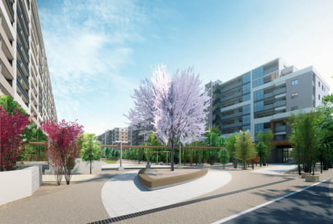 東急不動産の「ブランズ」の取り組みとしては、太陽光パネルや、平置き駐車場全区画へEV充電設備を設置する。また、東急不動産グループの造園会社・石勝エクステリアによる植栽を生かしたプロムナードなど、緑豊かな住環境とする。