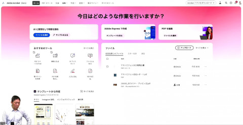 また、Adobe Expressプレミアムプランの全機能とアセットにアクセス可能とする。プレゼン資料やソーシャル投稿、バナーなどのビジュアルコンテンツに活用できるほか、Adobe Acrobat上の「画像を生成」「画像を編集」「背景を削除」といった機能の利用もできる。
