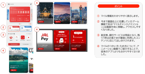 JAL、「JMBアプリ」を一新 JAL Payやマイル数などホーム画面を選べる