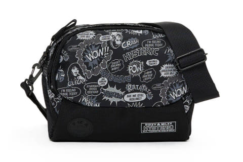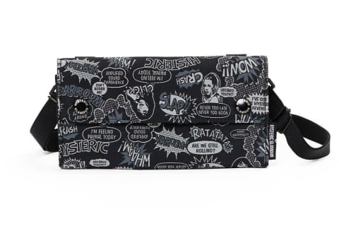 メイン素材はアメリカンポップアートのエッセンスを取り入れたヒステリックグラマーらしいデザインを、高密度に織りあげたポリエステルジャカードで繊細に表現。日本で古くからジャカード織物を生産している職人が手掛けた立体感のある柄を特徴としている。