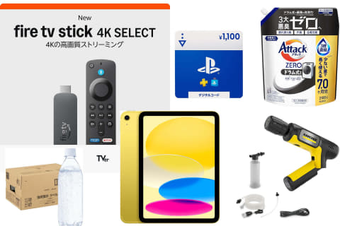 Amazon Fire TV StickなどAmazonデバイスのほか、Amazonギフトカードや、プレイステーション、U-NEXTなどのギフトカードもセールで注目されています。また、洗剤や水、日用品なども多く購入されています。
