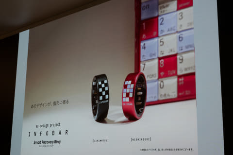 携帯電話デザイン開発プロジェクト「au Design project」の代表作で、2003年発売の「INFOBAR」を象徴するカラー“NISHIKIGOI”と“ICHIMATSU”をモチーフにしたデザインが特徴。「Smart Recovery Ring」は睡眠計測や体力回復にフォーカスしたissin製スマートリングで、同製品の3月の発表・発売時にINFOBARコラボデザインの投入が予告されていた。