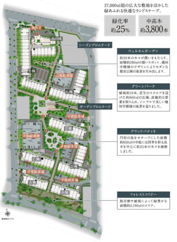 シティテラス多摩川では、37,000m2以上の敷地の中で、空地率約55%、緑化率約25%とし、約3,800本の中高木を配置。地区公園、地区広場、コミュニティ街路による景観形成を特徴としている。また、前面棟は多摩川を望む、南向き系中心の住棟配置とした。共用施設はオープンラウンジ、コミュニティルーム、ゲストルーム、テレワークルーム等を設けている。