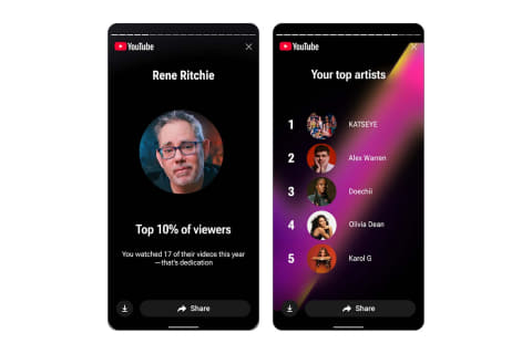 音楽を聴いた人は、ハイライトの一部として、今年のトップ アーティストとトップ楽曲も表示。また、YouTube Music アプリでは、トップ ジャンル、トップ ポッドキャスト、海外の音楽の視聴傾向など、より詳しい分析を楽しめるという。
