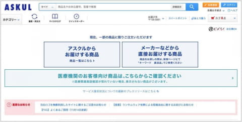 3日から、ASKUL(事業所向け)サービスにおいて、Webサイトでの注文を再開。一部物流センターからの倉庫管理システムを使用した在庫商品出荷の再開は12月中旬以降を予定しており、出荷商品・出荷センターは順次拡大する。新規のWeb注文の再開にあわせて、新規の会員登録も再開している。