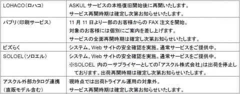 個人向けECの「LOHACO(ロハコ)」は、ASKULの本格復旧後に再開する。