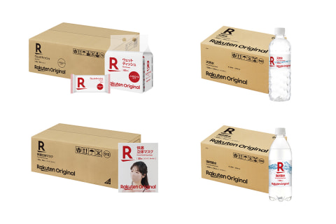 「Rakuten Original 天然水 500ml×24」(1,180円)や「Rakuten Original 強炭酸水 500ml×24」(1,310円)、「Rakuten Original ウェットティッシュ 60枚×64パック」(5,760円)、「Rakuten Original 快適立体マスク 30枚×9パック」(3,980円)などがある。いずれもオンラインで購入可能で、今後順次商品数を拡大する。