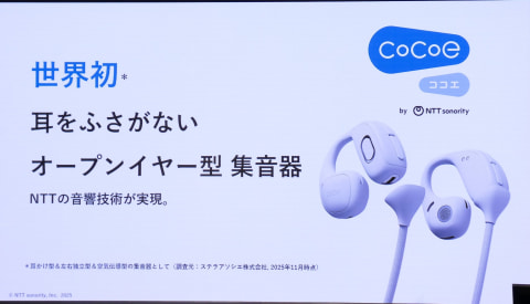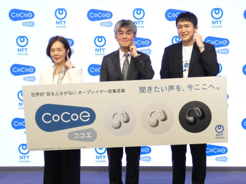 NTTソノリティは、耳をふさがないオープンイヤー型の集音器「cocoe Ear(ココエイヤー)」を、12月23日からクラウドファンディングサイト「GREEN FUNDING」で展開する。価格は39,600円で、最大30%OFFの早期支援プランも用意される。