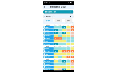 日本気象協会は、全国14市場を対象とした「野菜の相場予測」サービスを提供開始した。主要50品目の取引価格や数量を最大15週先まで予測する。スマートフォンアプリ「biz tenki」では月額650円で提供されるほか、PDFやCSV形式でのデータ提供にも対応する(別料金)。