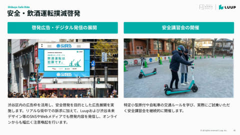 渋谷区内の広告枠を活用した安全啓発広告も展開し、街中での訴求に加えて、Luupや渋谷未来デザインなどのSNSやWebメディアでも注意喚起を行なう。
