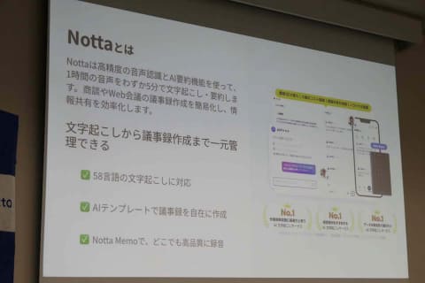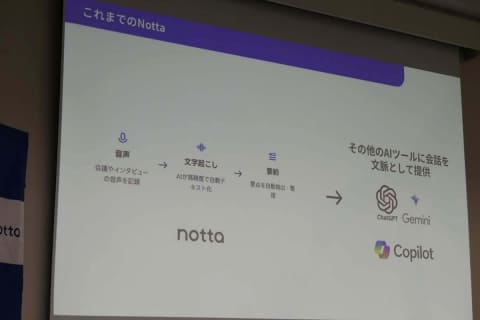 AI議事録サービス「Notta」は、音声データと外部情報を統合して自動で資料作成を行なう新機能「Notta Brain」を、26年1月に提供開始する。