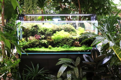 店舗設計は環境に配慮したもので、LED照明や再生可能エネルギーの導入を進め、ZEB Ready認証を取得している。屋上には太陽光パネルで店舗で使用する電気の約10%を創出、残り約90%の電気も再生可能エネルギーを使用して、CO2排出実質ゼロ店舗(CO2フリー店舗)を実現するという。店舗の屋上緑化、再生材の使用、低温で製造された低炭素アスファルト材を使用した駐車場など、持続可能な店舗づくりの取り組みも進めた。