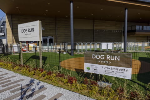 吉川美南駅東口から店舗入り口までの道沿いには、地域の人がくつろげる空間「くみまちひろば よしかわ」を整備。カインズアプリで予約・入場できる「スマートドックラン」が設置されるほか、店内焼き上げマフィンが人気のカフェ「CAFE BRICCO」も併設される。