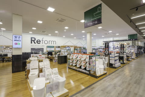 カインズ吉川美南店では、日用品、ペット用品、インテリア、グリーンなどについて約7万7,000点を取り揃え、展示見本や試用品を豊富に用意する。しつけから撮影、トリミングまで各種サービスをすべて兼ね揃えたというペットコーナーや、幅広い商品ラインアップと修理サービスを備えるサイクルコーナー、専門スタッフに相談できるリフォームコーナーなど、専門サービスも充実させた。