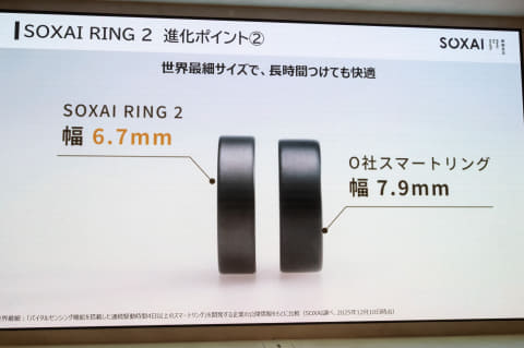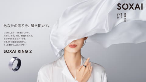 SOXAIは、自社で開発・販売する睡眠管理用スマートリング「SOXAI RING」の新モデル「SOXAI RING 2」を年12月10日に発売した。価格は39,980円。アプリの利用は無料の買い切り型。