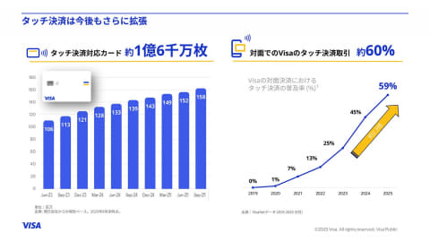 詳細は26年に入ってから発表予定だが、25年9月末時点で、国内のタッチ決済対応Visaカード発行枚数は約1億6,000万枚を超えた。この成果をもとに、大阪から全国にプロジェクトを拡大。Visaのタッチ決済普及を目指す。