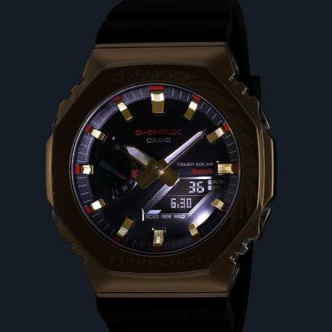 ベースになっているのは、2100シリーズでメタルベゼルとスマートフォンリンク機能を備えたGBM-2100シリーズ。ケース・バンドの樹脂パーツにはバイオマスプラスチックが使用されている。