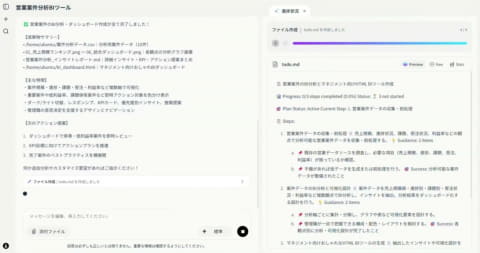 セキュリティ面では、チャット単位ごとに独立した仮想環境上でAIエージェントを動作させる設計を採用し、ほかのシステムやデータへの不要な影響や、本来権限のないシステム・外部サービスへのアクセスを防ぐ。