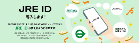 26年2月以降、JR 東日本グループの共通ID「JRE ID」がJRE POINTでも導入され、JRE POINT Webサイトやアプリでも利用可能になる。これにより、1つのID・パスワードでJR東日本グループのモバイルSuica、えきねっとなどのサービス登録を簡単にする。