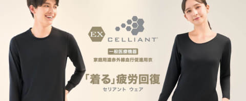 EX セリアントは、一般医療機器「家庭用遠赤外線血行促進用衣」に届出したリカバリーウェア。セリアントはアメリカのホロジェニックス社が開発した数種類の鉱石を練りこんだ素材で、トップバリュでは2018年からセリアント素材を使用し、着用することで休養をサポートする衣料品を販売している。