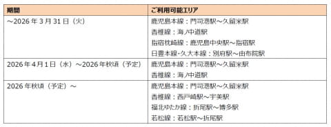 一方、実証実験が2026年3月31日で終了し、本格導入が見送られるのは、鹿児島地区の指宿枕崎線(鹿児島中央駅~指宿駅)と、大分地区の日豊本線・久大本線(別府駅~由布院駅)となる。