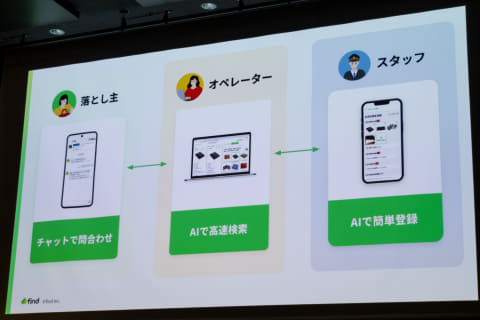 「落とし物クラウドfind」を展開するfindは12日、複数の交通機関や商業施設の落とし物を横断して検索できる新機能「横断検索find chat」を発表した。専用チャット「find chat」内に追加される。