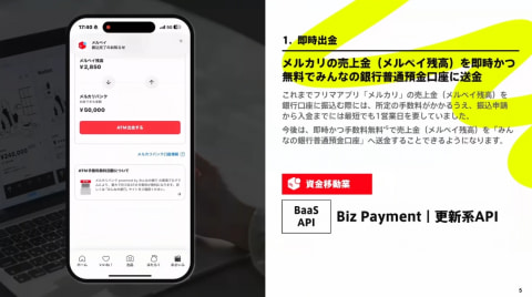 同社は、「金融を感じさせないUXを実現し、生活動線のまま金融を動かす(みんなの暮らしに溶け込ませる)」ことを重視。また、メルカリの2,300万人を超えるアクティブ基盤と接続し、金融アプリによる遷移なしで手数料ゼロと即時振込の新体験を完結させることが可能になる。