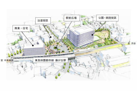 東急田園都市線 藤が丘に商業・病院・公園一体の駅前拠点