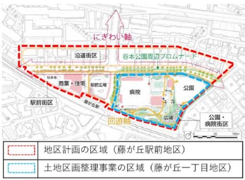 横浜市は、東急田園都市線 藤が丘駅前地区の都市計画を決定し、土地区画整理事業を認可した。駅前施設・病院・公園が一体となった駅前拠点の形成に向け、病院や駅前ショッピングセンターの建替え、公園や駅前広場の再整備、歩行者ネットワークの強化などが進められる。