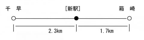 新駅が設置されるのは、千早駅から2.3km、箱崎駅から1.7kmの場所で、所在地は福岡県福岡市。25年4月から6月にかけて新駅の駅名募集を行なっていた。