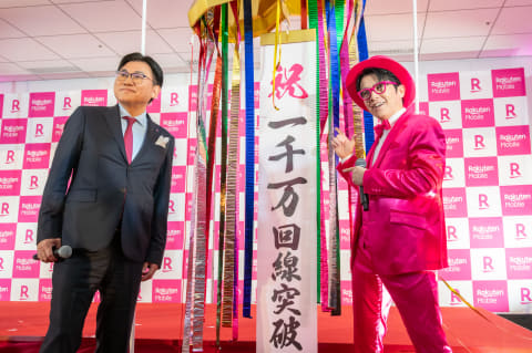 サービス開始当初からの目標を達成したことについて、イベントに登壇した代表取締役会長の三木谷浩史氏は、(足りないエリアを補う)ローミングで協力したKDDIをはじめ、関わった各社に謝辞を述べた上で、「自動車、家電、防犯カメラ、プライベート5Gや、AI時代にも、ワイヤレスはますます重要になる。社会のために役立つよう頑張っていく。よろしくお願いします」と語った。