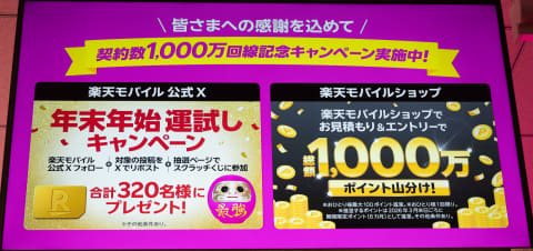 楽天モバイルは25日、契約数が1,000万件を突破したと発表した。2020年4月のサービス本格開始から5年8カ月での1,000万回線達成となる。